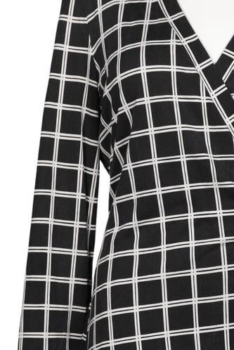 | Details | Jersey, Langarm, Bindegürtel, Wickeloptik, V-Ausschnitt, Kariert |