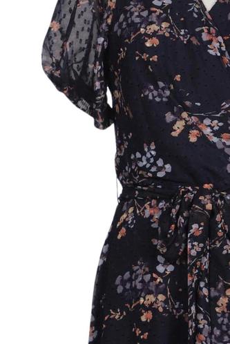 | Details | Chiffon, Kurzarm, Bindegürtel, V-Ausschnitt, Floral |