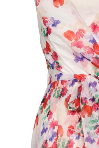 | Details | Chiffon, ärmellos, Bindegürtel, V-Ausschnitt, Floral |