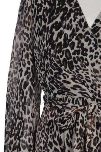 | Details | Chiffon, Langarm, Bindegürtel, Wickeloptik, V-Ausschnitt, Leopard |