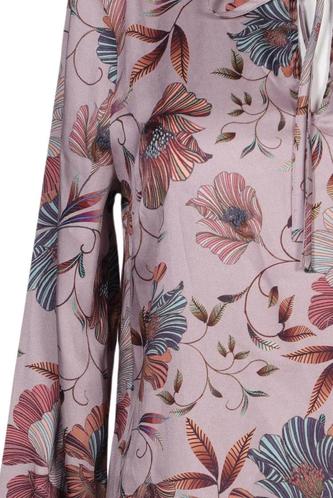 | Details | Satin, Langarm, V-Ausschnitt, Floral |