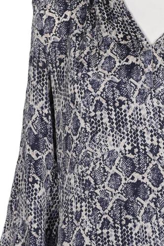 | Details | Satin, Dreiviertelarm, V-Ausschnitt, verschlusslos, Motivprint |