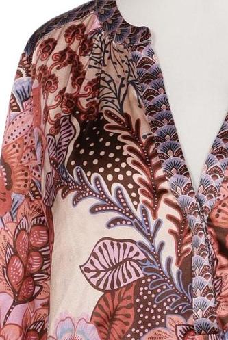 | Details | Satin, Langarm, V-Ausschnitt, verschlusslos, Floral |