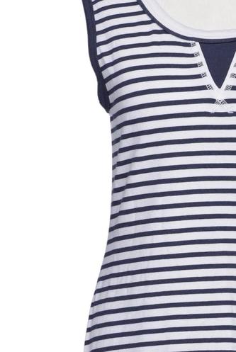 | Details | Jersey, Lochstickerei, ärmellos, Rundhals, Gummizug/Tunnelzug, Streifen |