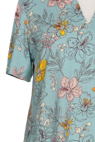 | Details | Jersey, Kurzarm, V-Ausschnitt, Floral |