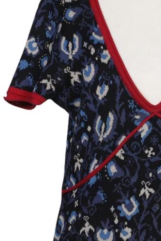 | Details | Grobstrick, Kurzarm, V-Ausschnitt, Floral |