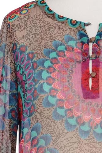 | Details | Chiffon, Langarm, V-Ausschnitt, verschlusslos, Ethno |
