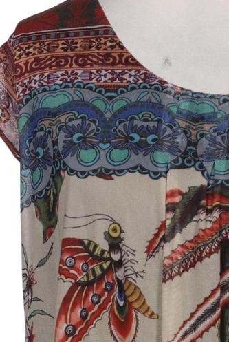 | Details | Chiffon, Kurzarm, Rundhals, verschlusslos, Ethno, Floral |