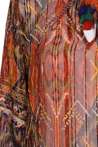 | Details | Fransen, Chiffon, Dreiviertelarm, V-Ausschnitt, verschlusslos, Ethno |