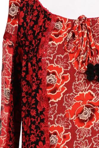 | Details | Fransen, Chiffon, Langarm, Rundhals, verschlusslos, Floral |