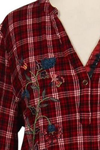 | Details | Stickerei, Langarm, Front Knopfleiste, Kariert |