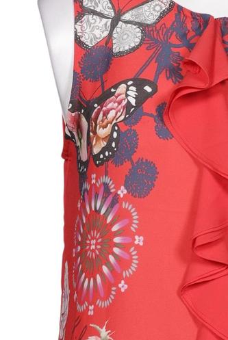 | Details | Rüschen, Chiffon, ärmellos, Rundhals, verschlusslos, Floral |