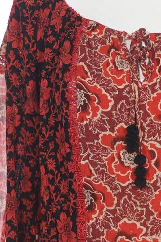 | Details | Fransen, Chiffon, Langarm, V-Ausschnitt, verschlusslos, Floral |