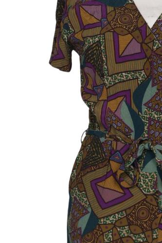 | Details | Jersey, Kurzarm, Bindegürtel, V-Ausschnitt, Ethno |