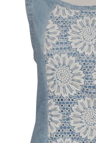 | Details | Jeans, Spitze, ärmellos, Rundhals, Floral |