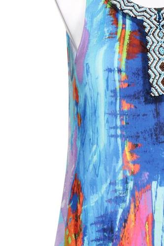 | Details | Jersey, Perlen, ärmellos, V-Ausschnitt, Motivprint |