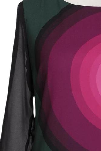 | Details | Chiffon, Langarm, Rundhals, Reißverschluss/Knöpfe hinten, Motivprint, Streifen |
