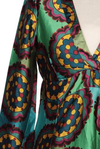 | Details | Satin, Langarm, V-Ausschnitt, Ethno |