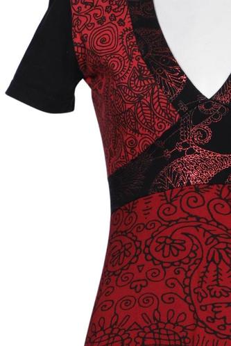 | Details | Jersey, Kurzarm, V-Ausschnitt, Paisley |
