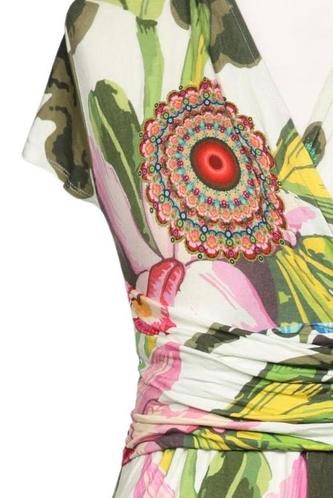 | Details | Jersey, Kurzarm, Bindegürtel, V-Ausschnitt, Floral |