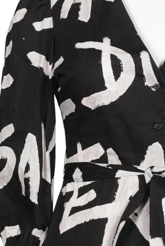 | Details | Jersey, Dreiviertelarm, Bindegürtel, V-Ausschnitt, Motivprint |