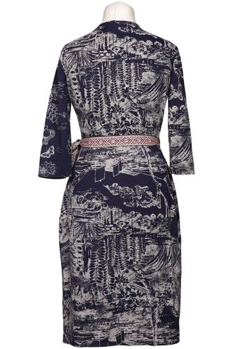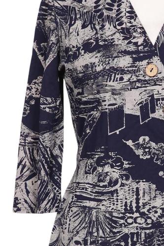 | Details | Jersey, Dreiviertelarm, Bindegürtel, Wickeloptik, V-Ausschnitt, Motivprint |