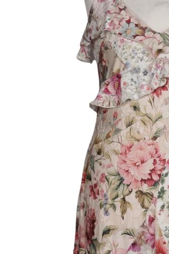 | Details | Satin, Rüschen, ärmellos, V-Ausschnitt, Floral |