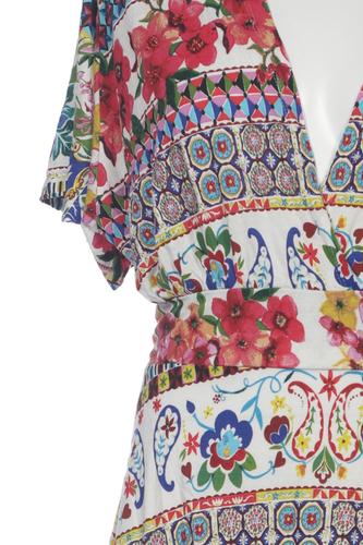 | Details | Jersey, Kurzarm, Bindegürtel, V-Ausschnitt, Ethno, Floral |