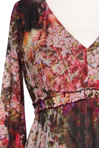 | Details | Rüschen, Chiffon, Langarm, V-Ausschnitt, Floral |
