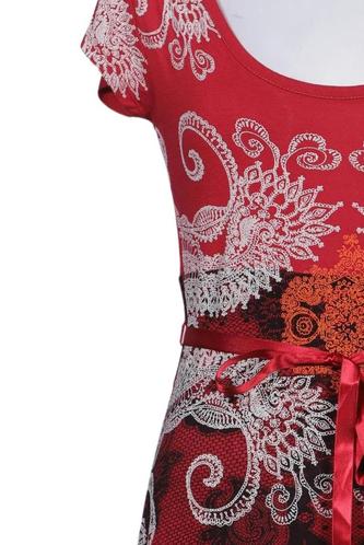 | Details | Jersey, Spitze, Kurzarm, Bindegürtel, Rundhals, Floral |