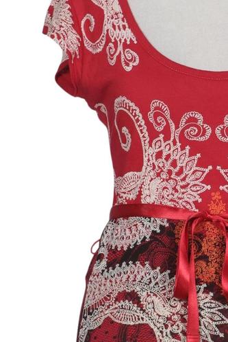 | Details | Jersey, Spitze, Kurzarm, Bindegürtel, Rundhals, Floral |