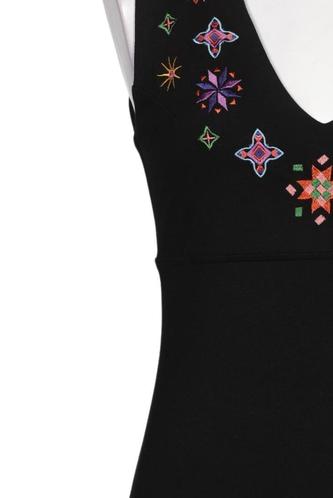 | Details | Jersey, Stickerei, ärmellos, V-Ausschnitt, Reißverschluss/Knöpfe hinten, Floral |