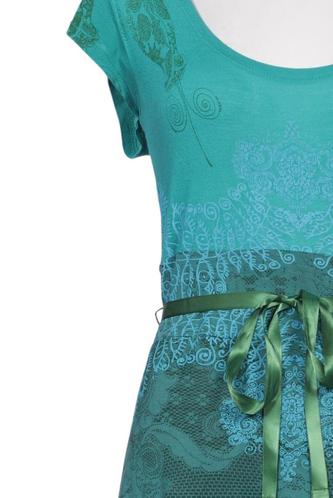 | Details | Jersey, Spitze, Kurzarm, Bindegürtel, Rundhals, Floral |