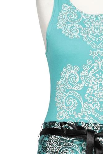 | Details | Jersey, ärmellos, Bindegürtel, Rundhals, Floral |