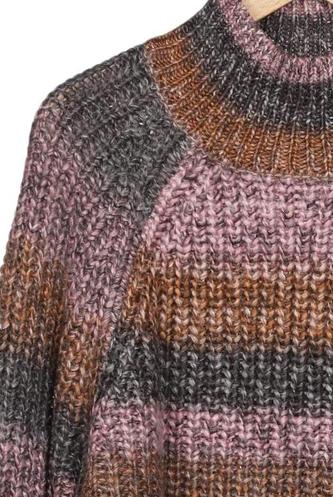| Details | Grobstrick, Langarm, Rollkragen, Streifen |