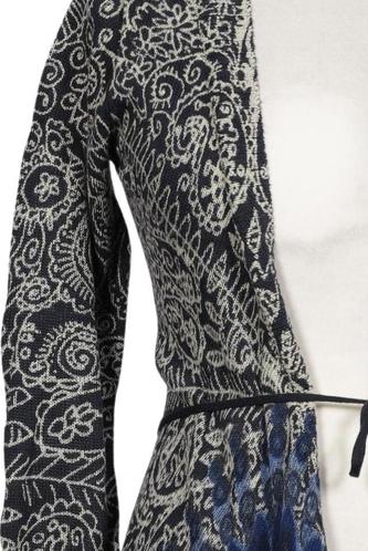 | Details | Grobstrick, Langarm, Bindegürtel, Wickeloptik, verschlusslos, Ethno |