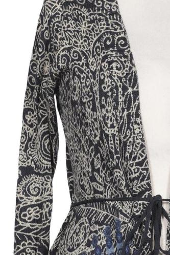 | Details | Grobstrick, Langarm, Bindegürtel, Wickeloptik, verschlusslos, Floral |