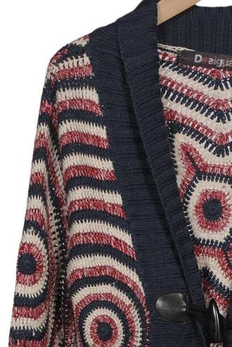 | Details | Grobstrick, Langarm, Front Knopfleiste, Motivprint |