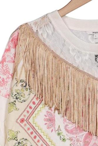 | Details | Fransen, Jersey, Spitze, Rundhals, Floral |