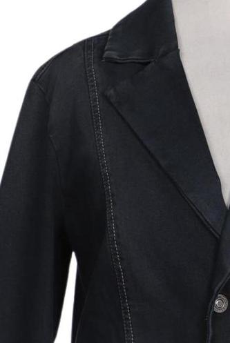 | Details | Jeans, Langarm, V-Ausschnitt, Front Knopfleiste, Einfarbig |