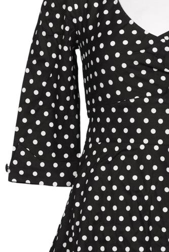 | Details | Dreiviertelarm, V-Ausschnitt, Reißverschluss/Knöpfe hinten, Punkte |