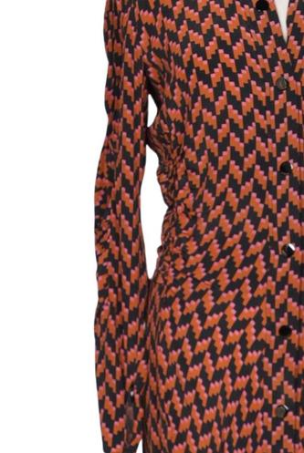 | Details | Langarm, Bindegürtel, V-Ausschnitt, Front Knopfleiste, Motivprint |