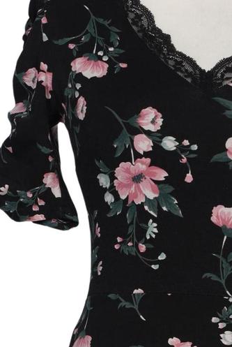 | Details | Jersey, Spitze, Kurzarm, V-Ausschnitt, Floral |