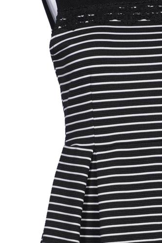 | Details | Jersey, Spitze, Lochstickerei, ärmellos, Rundhals, Reißverschluss/Knöpfe hinten, Streifen |