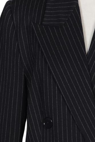 | Details | Langarm, V-Ausschnitt, Front Knopfleiste, Nadelstreifen |