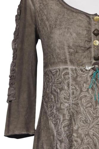 | Details | Jersey, Stickerei, Dreiviertelarm, Rundhals, Front Knopfleiste, Floral |
