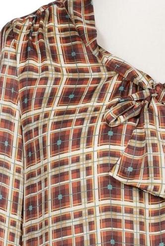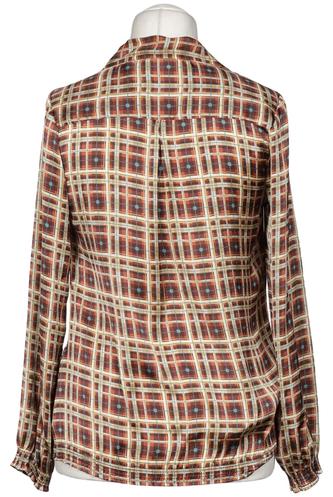 | Details | Satin, Langarm, V-Ausschnitt, verschlusslos, Kariert |