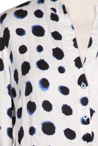 | Details | Satin, Langarm, V-Ausschnitt, verschlusslos, Punkte |