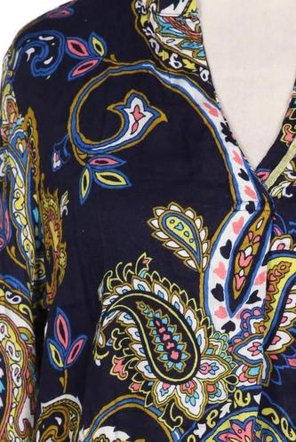 | Details | Satin, Langarm, V-Ausschnitt, verschlusslos, Paisley |