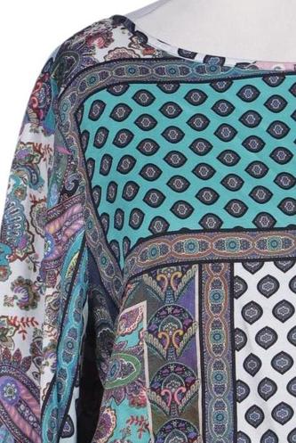 | Details | Satin, Langarm, Rundhals, verschlusslos, Floral, Paisley |